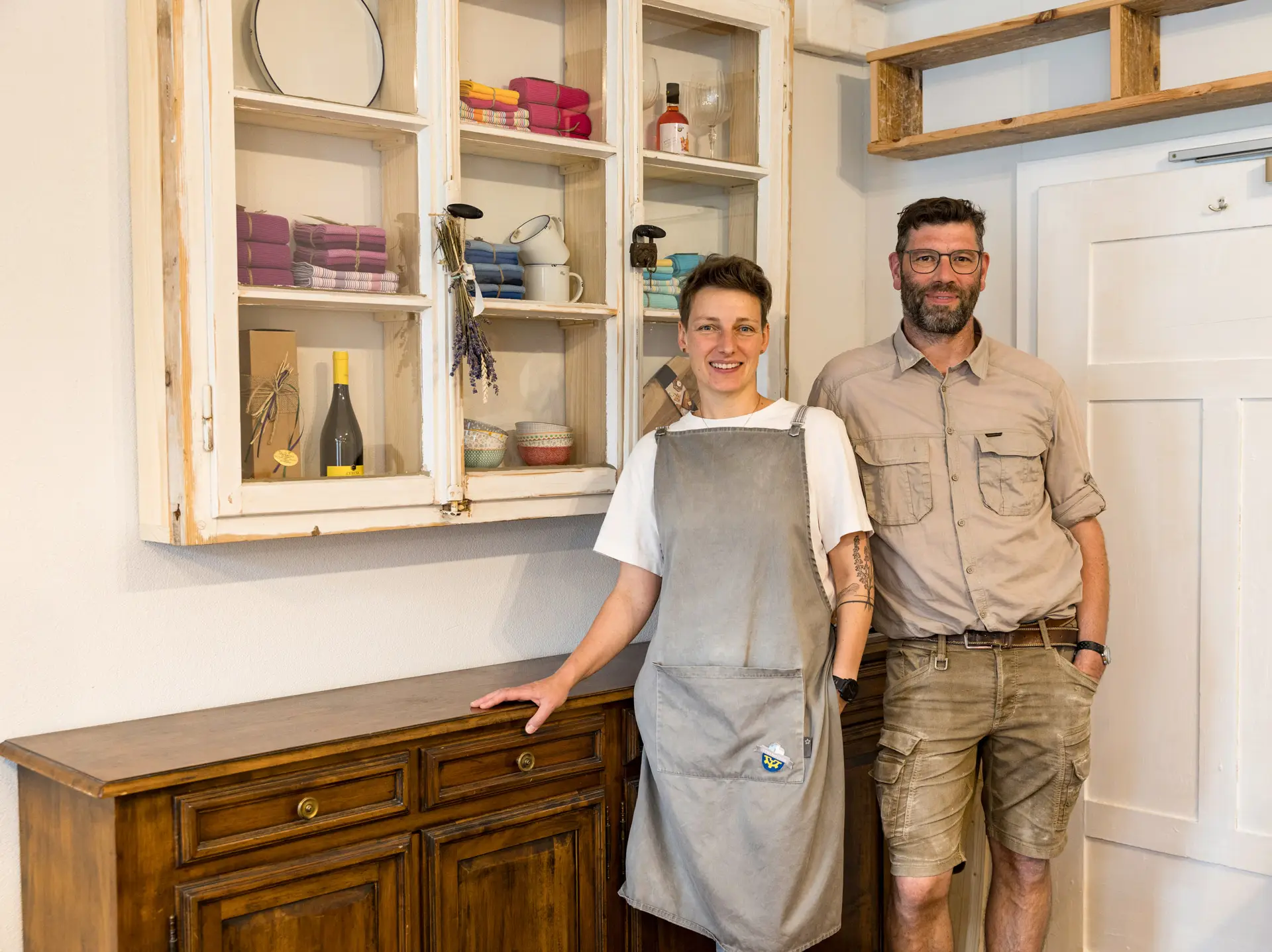 Franz-Josef Fischer und seine Frau teilen sich die Arbeit in der Lehenmühle. Bianca Fischer hat seit 2017 („vorher waren das drei Regale in der Mühle“) den Mühlenladen und dessen Sortiment sukzessive auf- und ausgebaut und rund um die vielen hauseigenen Mehle ein breites Angebot von qualitativ hochwertigen Lebensmitteln versammelt, das von Mehlprodukten wie Pasta oder italienischen Grissini über verschiedene Gewürze bin hin zu Käse oder Wein reicht. Man kann den im vergangenen Sommer neu gestalteten Mühlenladen allein durchstreifen und seine Einkäufe zusammensuchen – oder sich von Bianca Fischer fachkundig beraten lassen. Was wiederum ein Grund für positive Mundpropaganda sein dürfte: Hier kauft der Kunde nicht in einem seelenlosen, normierten Supermarkt, sondern in einem liebevoll eingerichteten Laden, in dem man freundlich und zuvorkommend – eben als Kunde – behandelt und bedient wird.